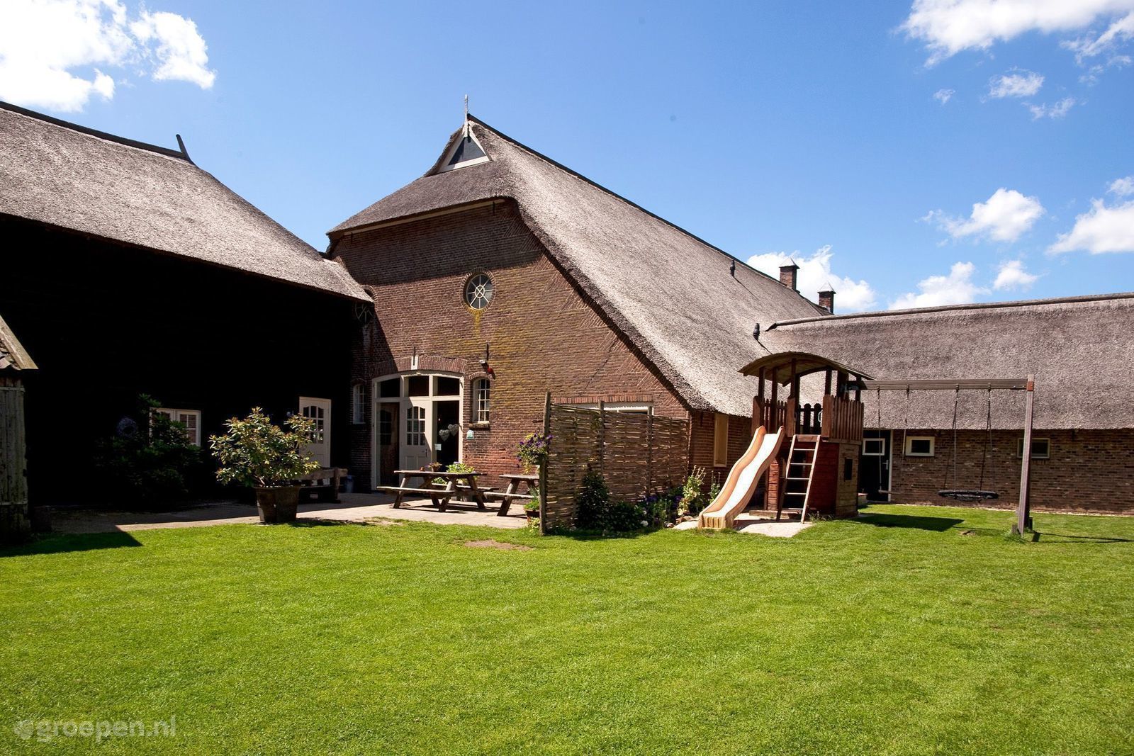 Diese aus drei Gebäuden bestehende Anlage hat zwei Schlafbereiche und einen Wohnbereich. Bekijk deze Kindervakantie